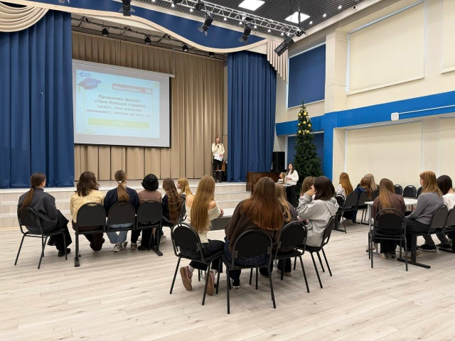 В школе №1434 ко Дню студента организовали интеллектуальное мероприятие «Своя игра». В состязании приняли участие учащиеся девятых классов — те, кому в ближайшее время предстоит определиться с продолжением образования и, возможно, поступить в колледж.