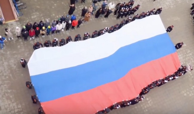 Праздничная церемония началась с подъёма государственного флага России. На площадке у флагштока была развёрнута копия триколора размером 10 на 20 метров в присутствии учеников кадетских и предкадетских классов, учителей, родителей, администрации и почётных гостей.
