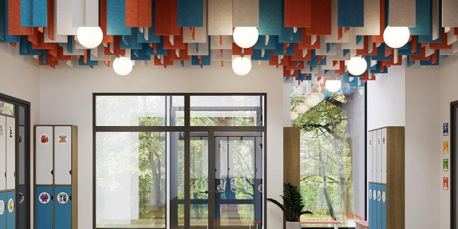 Дизайн помещения выполнят в светлых тонах. Мебель оснастят регулируемыми элементами. В учебной зоне применят цветовое зонирование, символизирующее различные типы интеллекта: жёлтый для развития речи, голубой для математических способностей, зелёный для творческого потенциала.